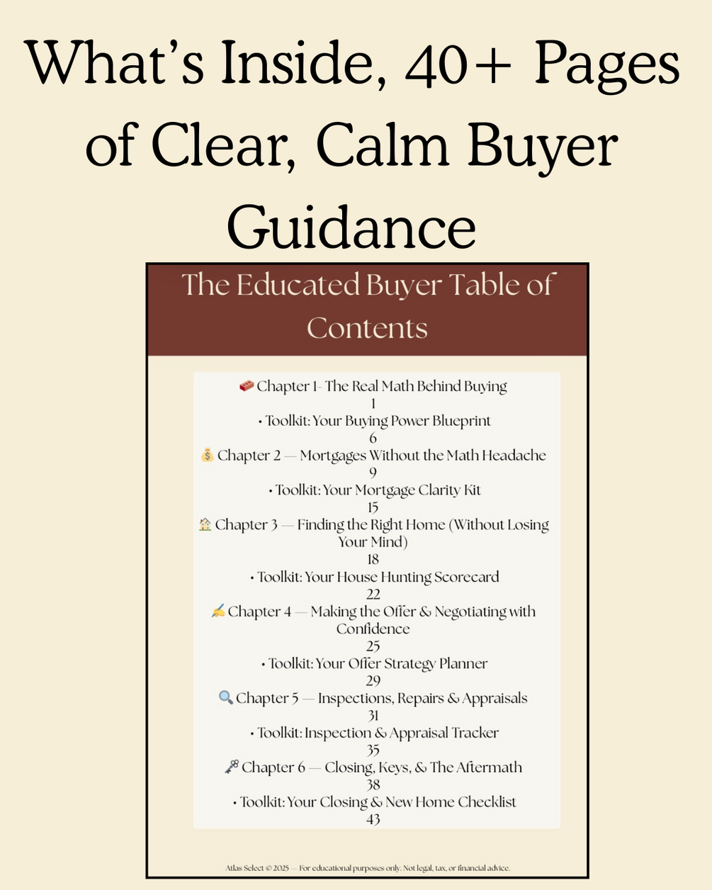 Inside, you’ll learn: What you can actually afford (not just what a lender approves) The real differences between loan types How to compare lenders without getting overwhelmed How to identify the right home vs. the wrong home How to structure a strong offer without overpaying How negotiation really works How to handle inspections, repairs, and appraisals What to do from contract → closing → keys What to watch out for in title, insurance, and closing paperwork And how to stay calm and confident the entire way Plus: You get worksheets, checklists, comparison charts, and planning tools in every chapter.